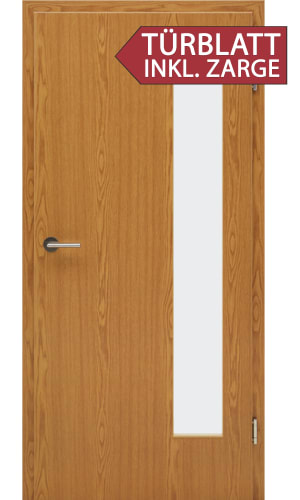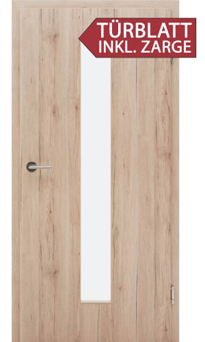 Zimmertür mit Zarge CPL Sandeiche Lichtausschnitt schmal mittig Rundkante