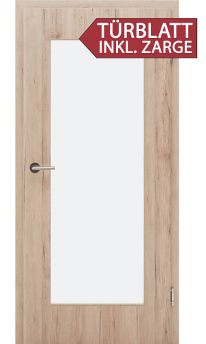 Zimmertür mit Zarge CPL Sandeiche Lichtausschnitt schmal schloßseitig Rundkante