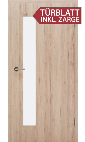 Zimmertür mit Zarge CPL Eiche crema rustikal Lichtausschnitt schmal bandseitig