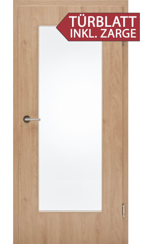 Zimmertür mit Zarge CPL Eiche Barrique Lichtausschnitt schmal bands. Rundkante