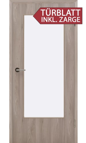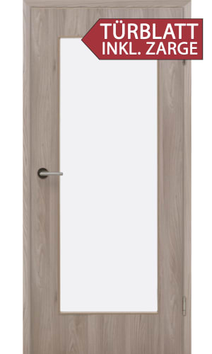 Zimmertür mit Zarge CPL Steineiche Lichtausschnitt schmal bandseitig Rundkante