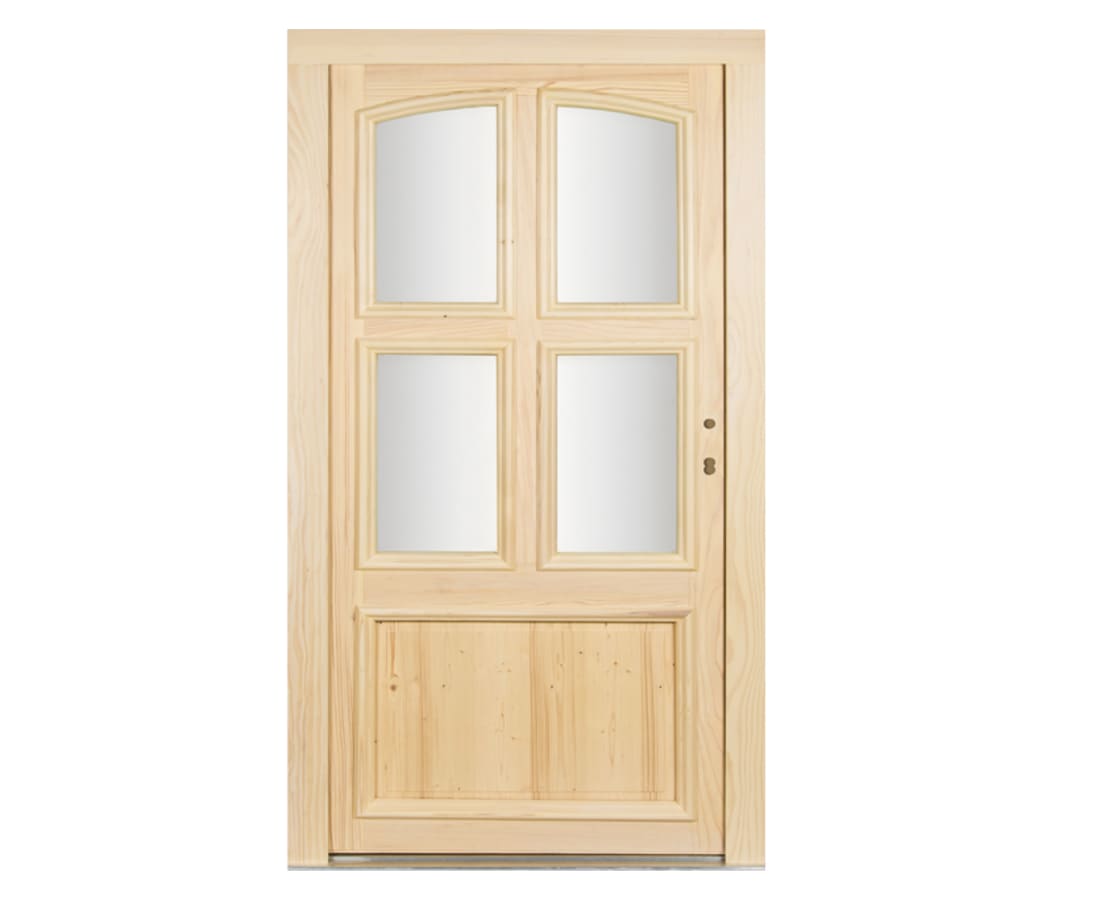 Fichtenholz ist ein nachwachsender Rohstoff, der ein natürliches Erscheinungsbild bei einer Haustür verkörpert. Die Haustür Ziegenhain aus Holz lässt Deinen Eingangsbereich individuell und einmalig erscheinen.