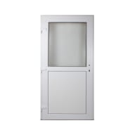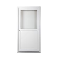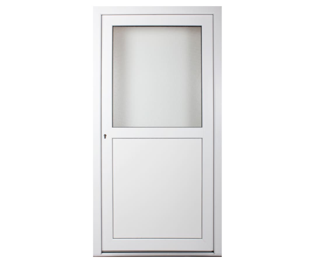 weiße Kunststoff-Kellertür Malin erhält durch das Zusammenwirken von großer Ornamentverglasung und senkrecht verlaufender Nutenstruktur, eine klassisch-elegante Optik. Die große 2-fach-ISO-Wärmeschutzverglasung Ornament 504 lässt sattes Tageslicht in Deinen Raum und schützt zugleich vor neugierigen Blicken.