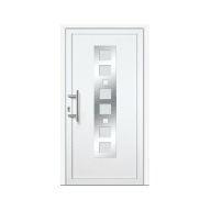 Du kannst die moderne Haustür zentimetergenau und maßgeschneidert auf Deine benötigte Türhöhe und Türbreite bestellen. Deine Sicherheit erhöhen eine 5-fach Rollzapfenverriegelung sowie dreidimensional verstellbare Bänder mit integrierter Aushebelsicherung. Die energiesparende thermische Bodenschwelle, die Sandwichfüllung und die 2-fach-ISO-Wärmeschutzverglasung bilden die Basis für eine gute Wärmedämmleistung.
