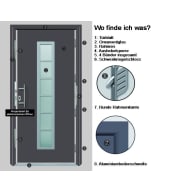 Aluminium-Haustür macht diese zu nahezu jedem Bau- und Wohnstil kompatibel. Die Haustür Emil verfügt, dank der Sandwichfüllung sowie der der thermisch getrennten Bodenschiene, über eine gute Wärmedämmleistung. Das 3-fach-Schwenkriegelschloss der Tür verstärkt weiterhin Deine Sicherheit.