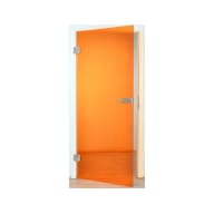 - Durchsichtige Glastür im warmen Orange