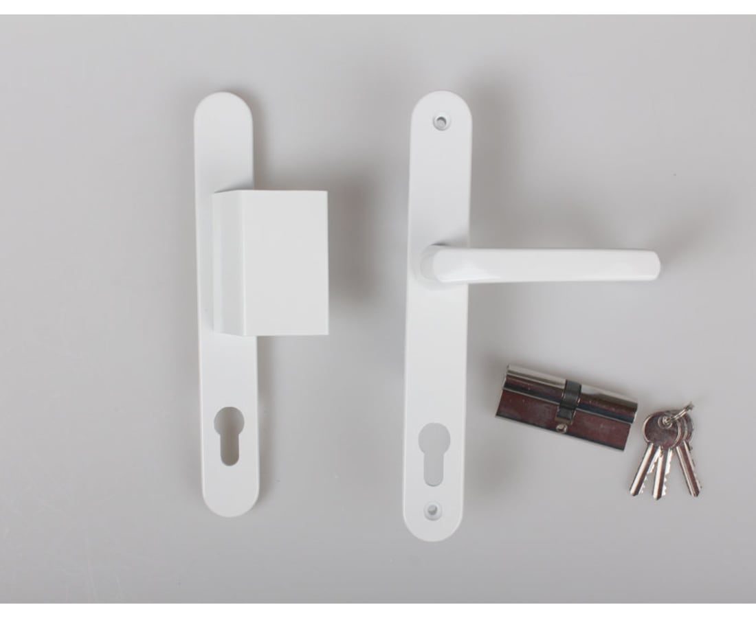 | Im Lieferumfang enthalten | 1 Drücker 1 Griffplatte 2 Langschilder PZ Befestigungsmaterial Verstärkungshülse für PZ 10/92 Profilzylinder / 3 Schlüssel |
