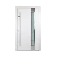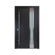 Unsere Aluminium Haustür Lukas erhält durch den seitlich positionierten, satinierten Glaseinsatz mit Edelstahl-Applikationsrahmen eine besonders anmutige Optik und ist die richtige Wahl für Dich, wenn Du einen stilvoll-modernen Wohnstil bevorzugst. Die