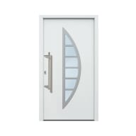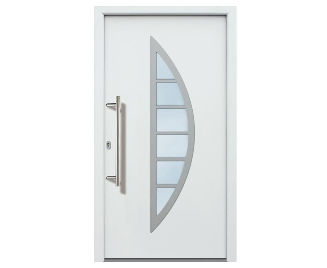 Unsere Aluminium-Haustür Paul-S besticht mit dem halbrunden Glaseinsatz und der eleganten Edelstahlumrandung durch eine besonders moderne und lebhafte Optik. Du benötigst eine bestimmte Türhöhe und/oder Türbreite? Bestell Deine neue Tür einfach und komfortabel