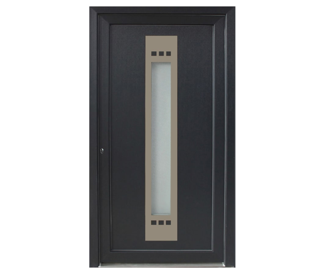 Die Haus-/Nebeneingangstür Santana ist mit dem dekorativen Edelstahl-Applikationsrahmen ein wahrer Blickfang und überzeugt darüber hinaus in Sachen Wärmedämmung und Sicherheit.