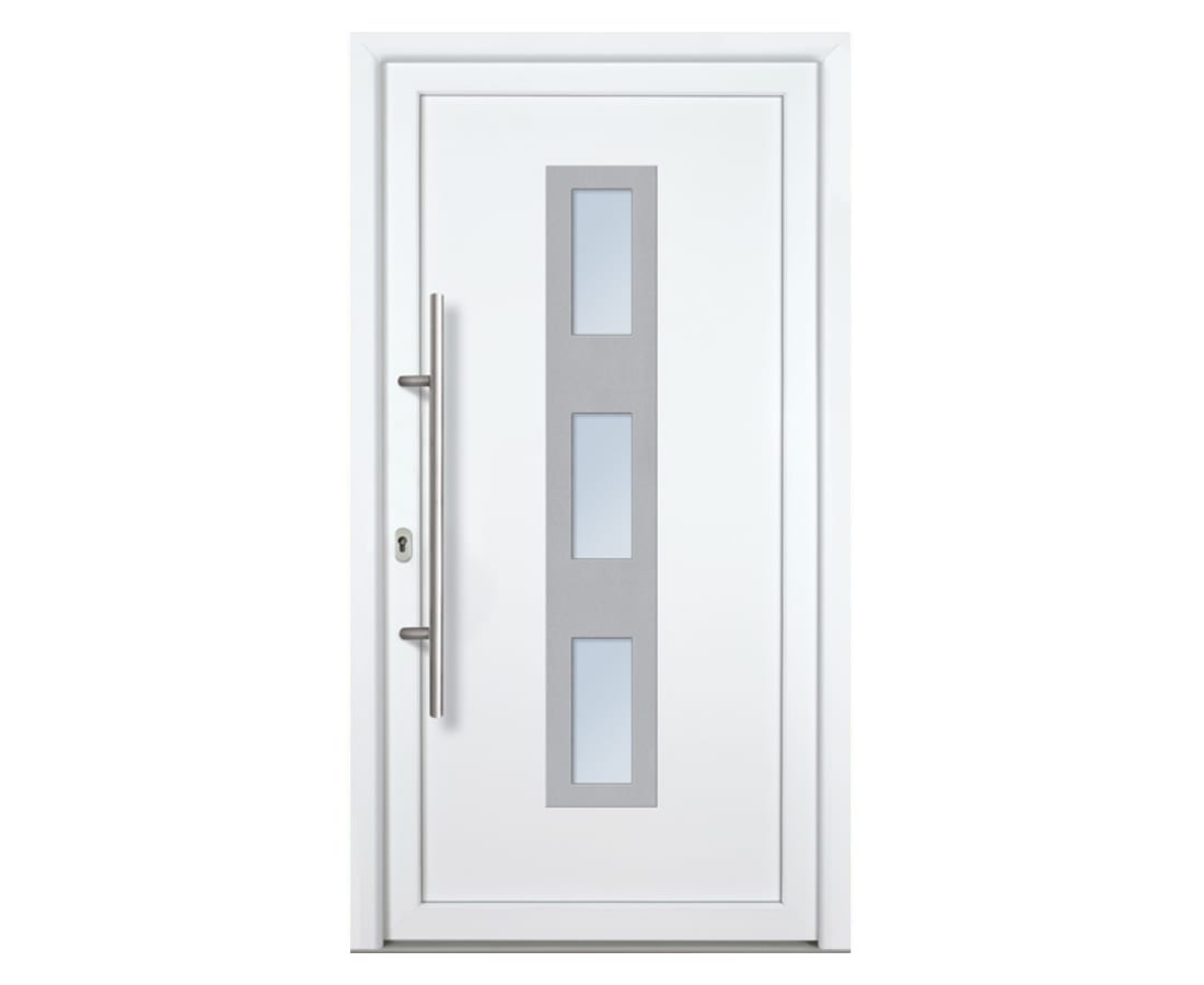 Unsere weiße Haustür Xenia sieht mit dem mittig angeordneten Lichtausschnitt und dessen Aluminiumumrahmung besonders ansprechend und elegant aus. Dabei ist die Haustür vielseitig einsetzbar und passt sowohl zu modernen als auch zu klassischen Baustilen. Du benötigst für Deine neue Kunststoff-Haustür ein bestimmtes Maß? Die Tür Xenia kannst Du sowohl in der Höhe (190 – 210 cm) als auch in der Breite (80 – 110 cm)