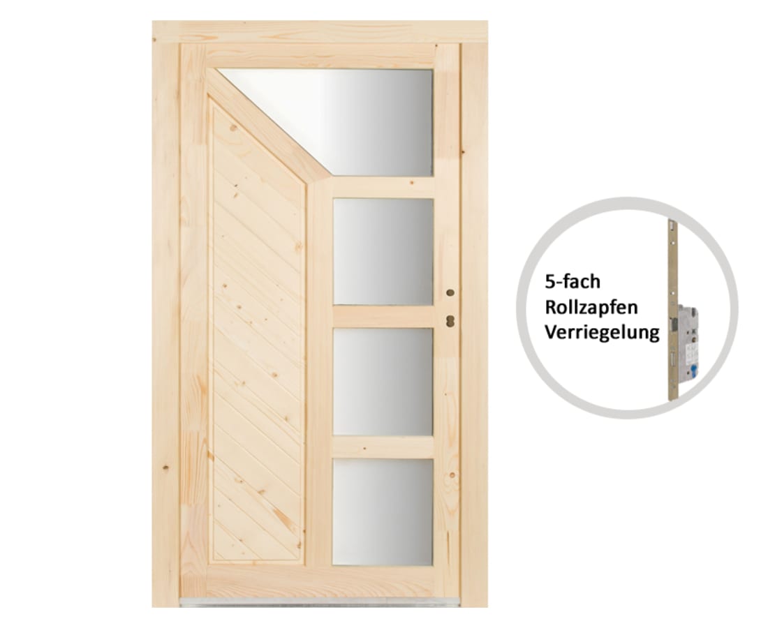 Durch eine 5-fach-Rollzapfenverriegelung erhält die Nebeneingangstür aus
